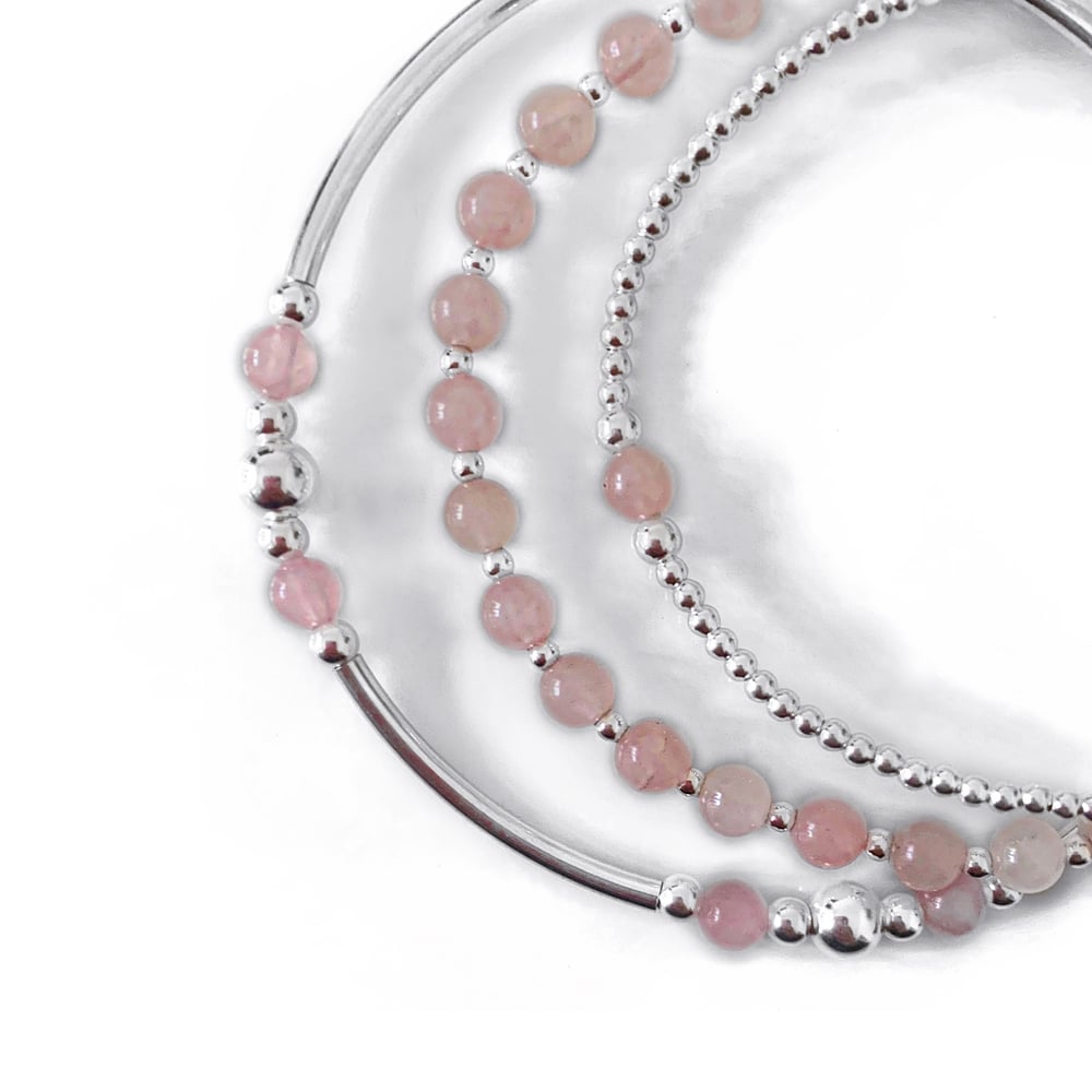 Sterling Silver & Rose Quartz Stacking Bracelet